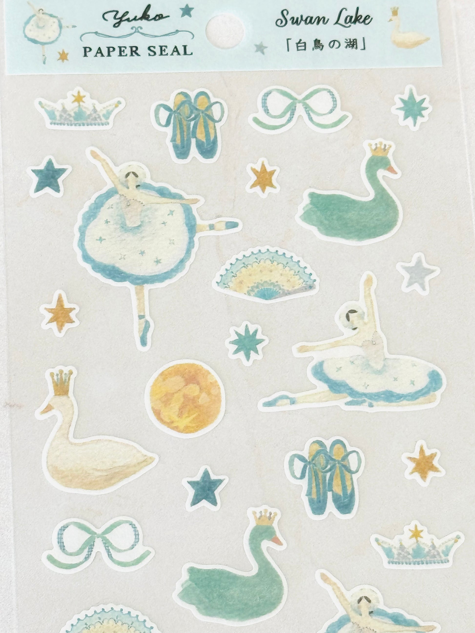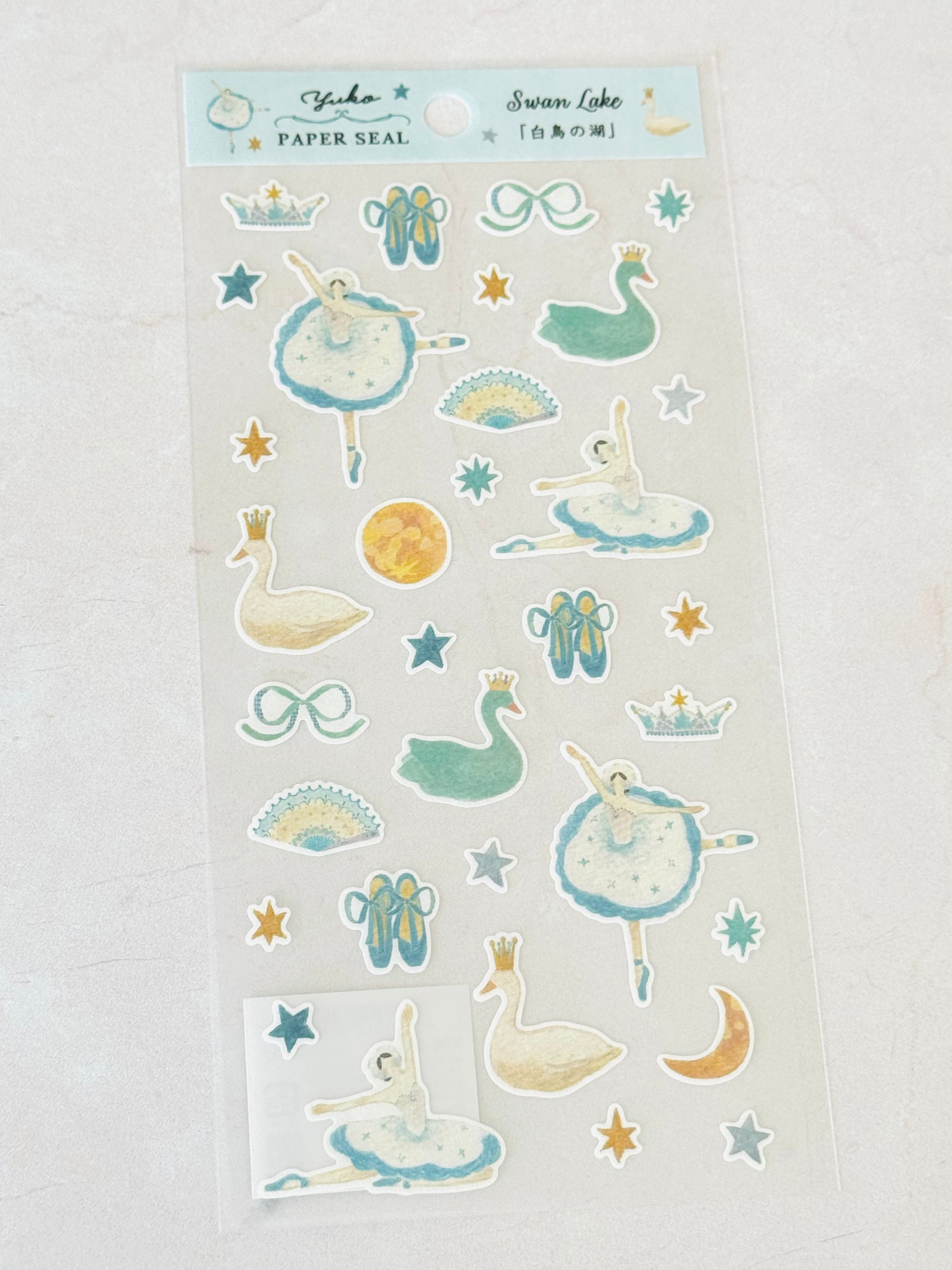 A story of love and betrayal — Swan Lake is a ballet classic by Russian composer Pyotr Ilyich Tchaikovsky (1840-1893). This ballet inspired sticker sheet is from Japanese illustrator Yuko.