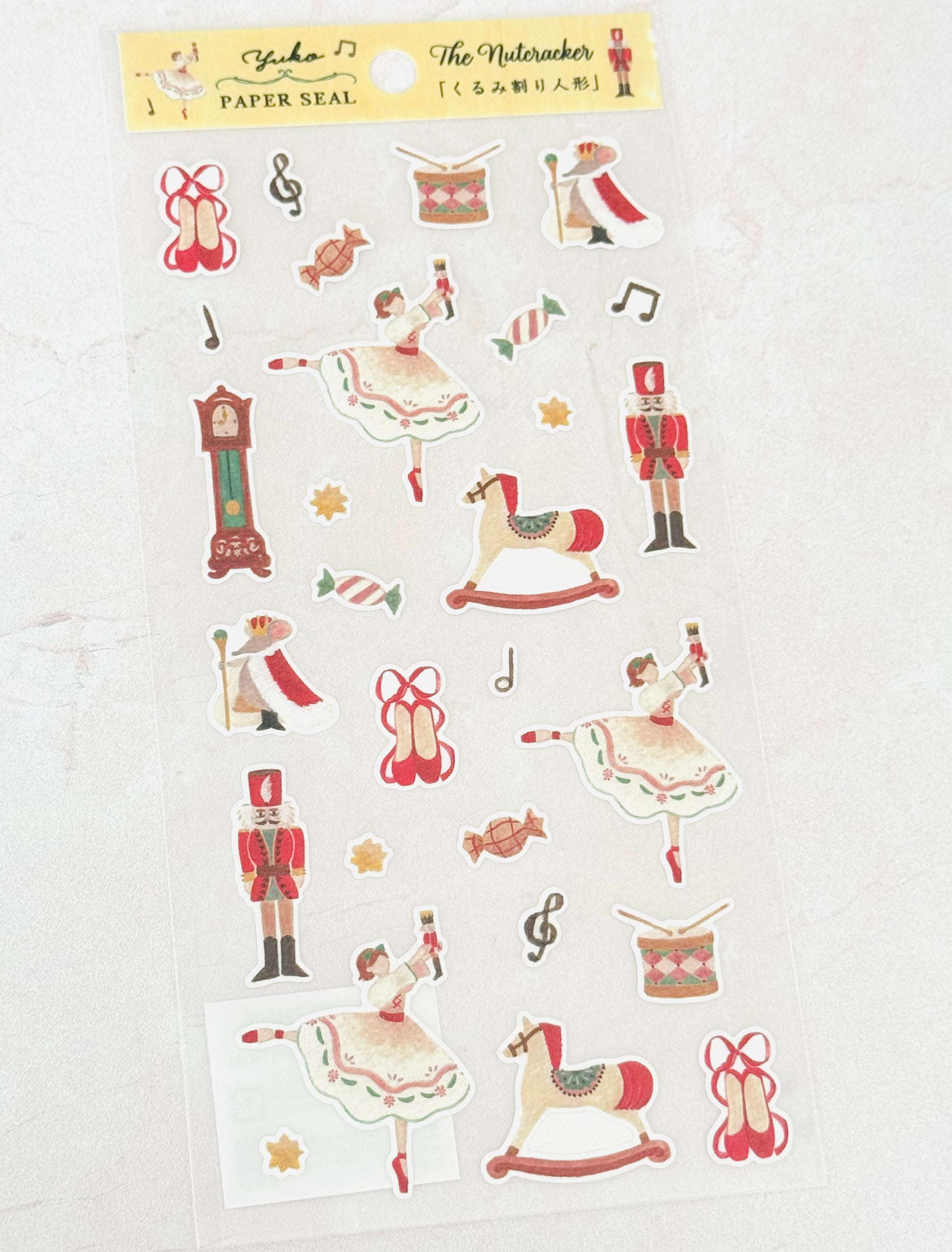 Another ballet classic — The Nutcracker by Russian composer PyotorIlyich Tchaikovsky (1840-1893) tells the story of Clara, a girl who receives a nutcracker on Christmas. Toys come to life and Clara and her nutcracker (transformed into a prince) begin a magical adventure. This ballet inspired sticker sheet is from Japanese illustator Yuko.