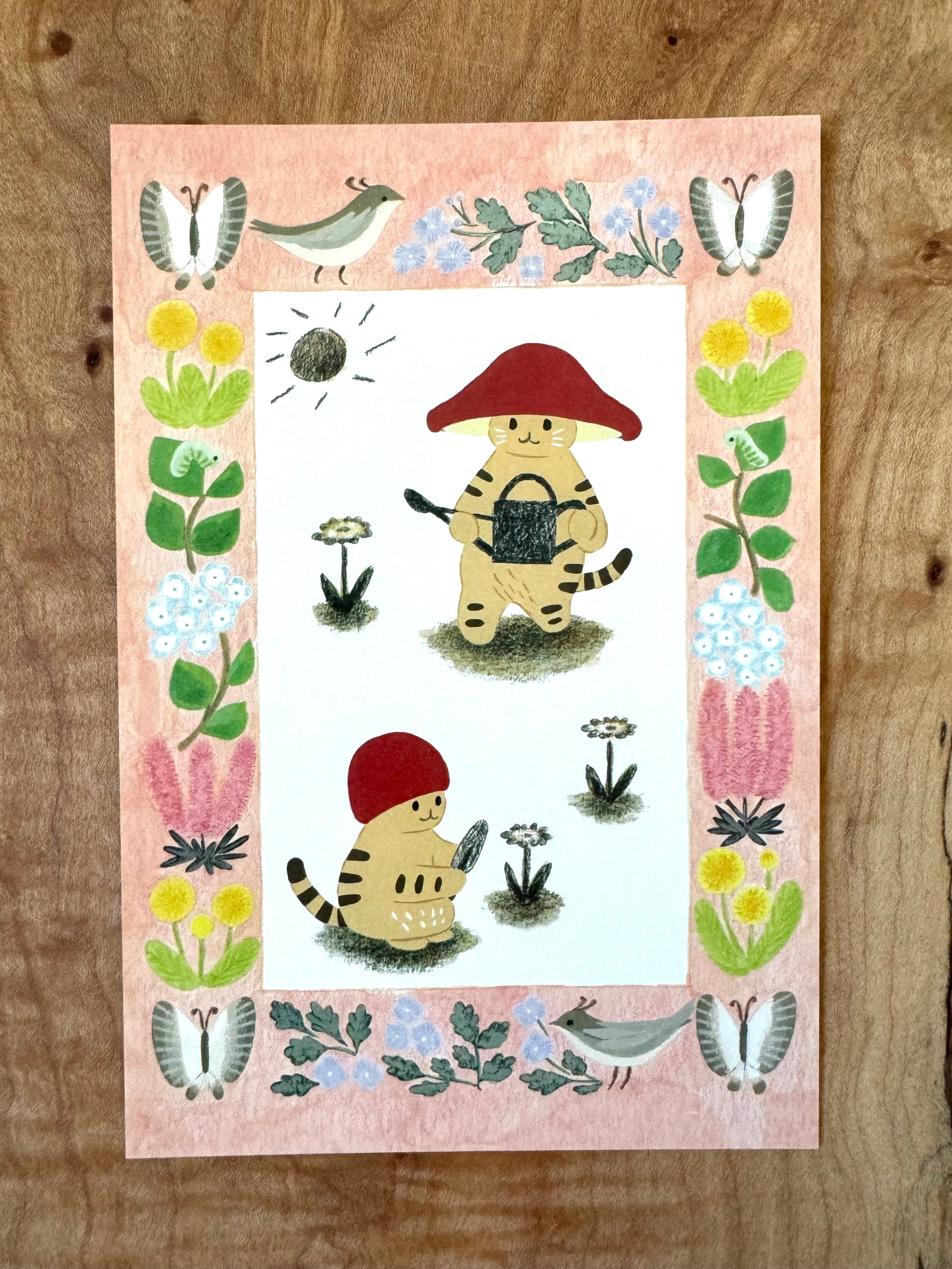 Spring is here! Mushroom Cat and Kitten love being outdoors and gardening fun!